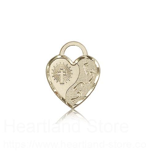 This Footprints Heart Medal is made of 14 Karat Gold. The jewelry pendant is sold as pictured and does not come with a chain. All medals are gift boxed in a light blue velvet jewelry box ready for gift giving.