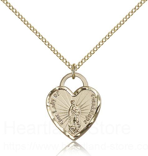 About this Our Lady of Guadalupe Heart Medal, Gold Filled