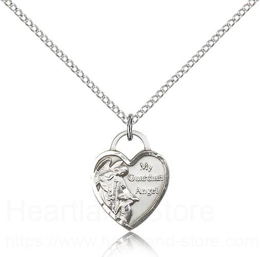 This Guardian Angel Heart Medal is paired with an 18 inch sterling silver lite curb chain as pictured. All medals are gift boxed in a light blue velvet jewelry box ready for gift giving.