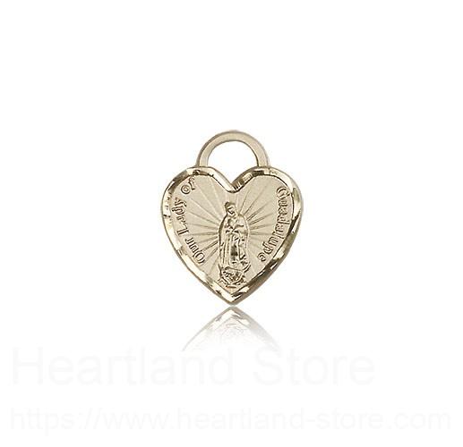 Our Lady of Guadalupe Heart Medal, 14 Karat Gold