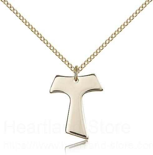 This Tau Cross Pendant is paired with an 18" gold filled light curb chain as pictured. All medals are gift boxed in a light blue velvet gift box ready for gift giving.