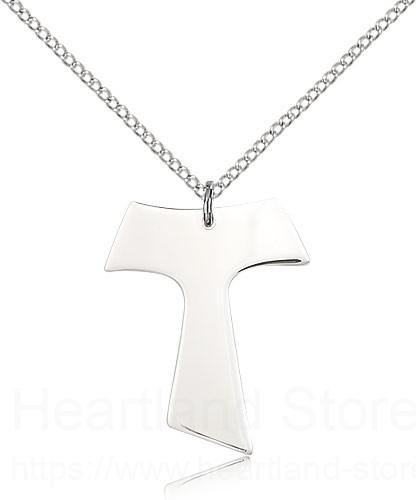 This Tau Cross Pendant is paired with an 18 inch sterling silver lite curb chain as pictured. All medals are gift boxed in a light blue velvet jewelry box ready for gift giving.
