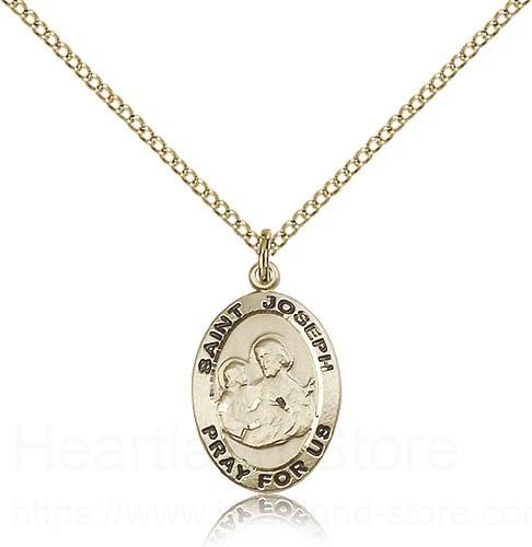 This St. Joseph Medal is paired with an 18 inch stainless steel gold-tone lite curb chain as pictured. All medals are gift boxed in a light blue velvet jewelry box ready for gift giving.