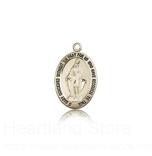 This Miraculous Medal is made of 14 Karat Gold. The jewelry pendant is sold as pictured and does not come with a chain. All medals are gift boxed in a light blue velvet jewelry box ready for gift giving.