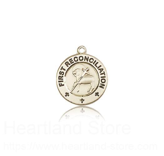 This First Reconciliation Penance Medal is made of 14 Karat Gold. The jewelry pendant is sold as pictured and does not come with a chain. All medals are gift boxed in a light blue velvet jewelry box ready for gift giving.